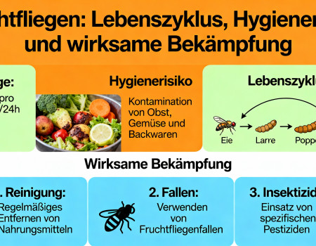 Obstfliegen- Fruchtfliegen, auch bekannt als Obstfliegen, verbreiten sich mit beeindruckender Geschwindigkeit: Ein einziges Weibchen kann bis zu 100 Eier innerhalb von 24 Stunden legen (Universität Kiel: https://www.uni-kiel.de/zoologie/). Die kleinen Fliegen sind nicht nur lästig, sondern auch hygienisch problematisch, da sie bevorzugt auf Gärreste und Lebensmittelreste gehen und nisten sich gerne im Biomüll oder Obstkörben ein. Sie lieben auch klebrige vom Backen überzogene Küchendecken. ...