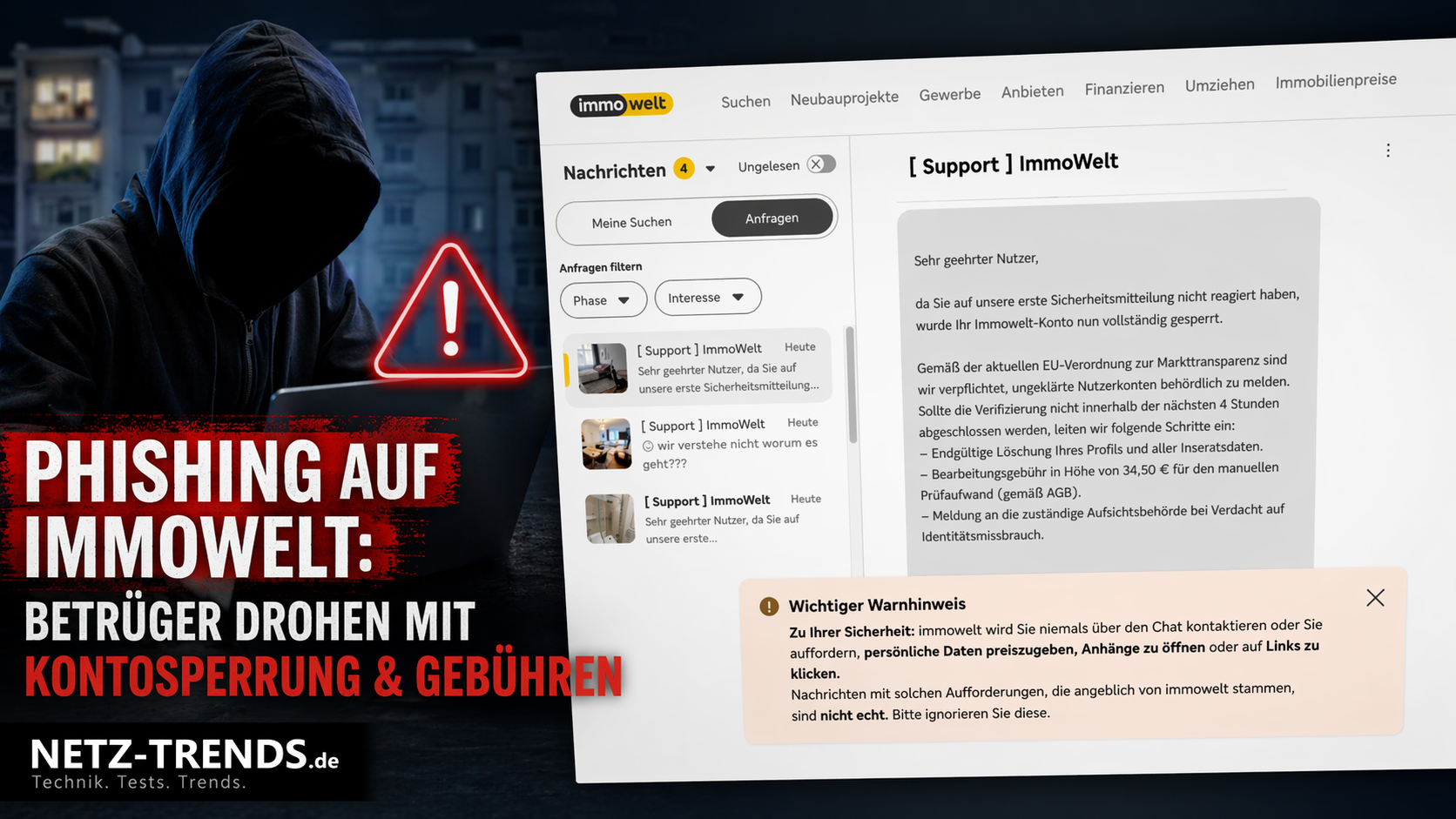 ⚠️ Phishing auf Immowelt: Betrüger missbrauchen „Support“-Chats für Kontosperrungs-Drohungen