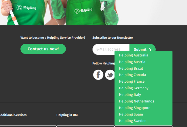 Auch das fiel uns auf: In dem Drop-Up-Menü zu den Länderpräsenzen von Helpling konnten wir Großbritannien gar nicht finden (obwohl es die Seite gibt: helpling.co.uk). Ebenfalls dem Handelsblatt ist wiederum zu entnehmen, dass Helpling in Großbritannien scheinbar die Marken-Gleichheit etwas aufweicht und dort wohl vor allem mit dem zugekauften Portal Hassle.com erfolgreich sei.