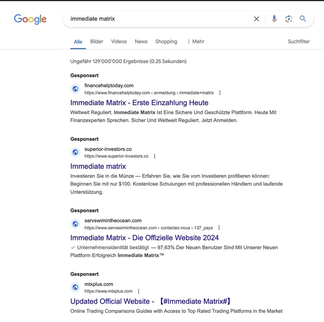 Das global agierende Betrugs-Netzwerk Immediate Matrix, Immediate Code und Immediate Core gerät seit November 2023 verstärkt in den Fokus, da es unerlaubt Bilder bekannter Persönlichkeiten wie Elon Musk und Patrice Motsepe, einem südafrikanischen Bergbau-Milliardär, in seiner Werbekampagne auf Plattformen wie Instagram, Facebook und Google einsetzt, um ahnungslose Kunden in eine Betrugsfalle zu ziehen.
