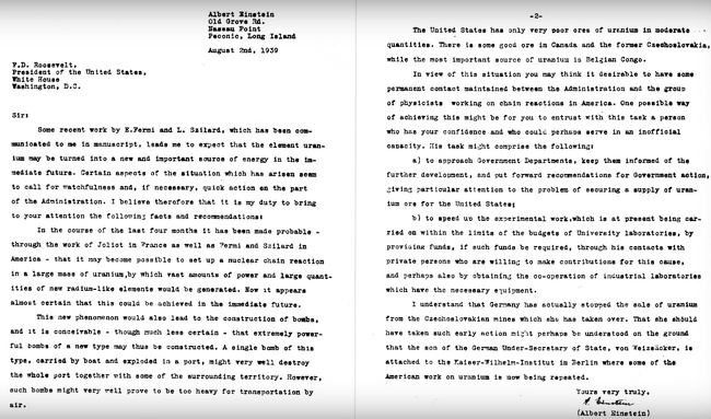 In dem berühmten Einstein-Szilárd-Brief heißt es: