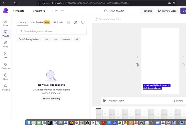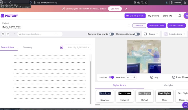Mein Test zeigt jedoch: Pictory ist nicht Reel-first gebaut, sondern wie ein Baukasten, der seine eigenen Modi und Zustände nicht sauber erklärt und die Nutzer an mehreren Stellen in Sackgassen laufen lässt. Wer in einem kommunikativen Klinik-/Social-Workflow schnell produzieren muss, verliert hier Stunden.