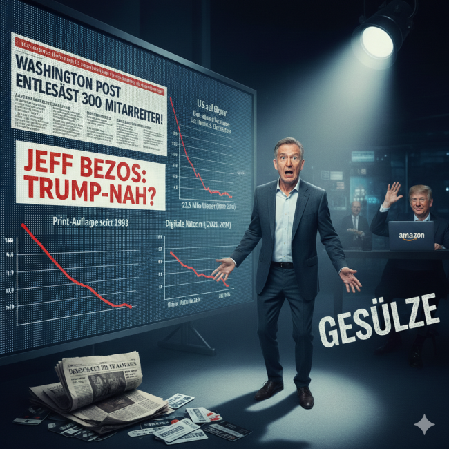 Jeff Bezos, der Amazon bereits am 5. Juli 1994 gründete, handelt als kühler Geschäftsmann. Die Behauptung einer Trump-Nähe ist das typische ideologische Gesülze, das den öffentlich-rechtlichen Rundfunk in eine tiefe Glaubwürdigkeitskrise treibt. Solange Bezos Millionen in linke Berichterstattung butterte, war er für das ZDF der „gute Milliardär“. Fordert er angesichts des drohenden Bankrotts Neutralität und wirtschaftliche Sanierung, wird er pünktlich um 7:30 Uhr politisch stigmatisiert. Wer so berichtet, betreibt keinen Journalismus, sondern billige Meinungsmache auf Kosten der Fakten.