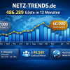 NETZ-TRENDS.de hat in den vergangenen zwölf Monaten eine stabile und themengetriebene Reichweite erzielt. Insgesamt verzeichnete das Nachrichtenportal 486.289 Gäste im Zeitraum von März 2025 bis Februar 2026. Das entspricht einem Durchschnitt von rund 40.500 Gästen pro Monat.