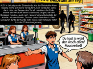 ALDI Leipzig-Elsterstraße: Mitarbeiter beleidigt Zeugen – Verkäufer lassen täglich 500 Euro klauen und greifen nicht ein und erteilen Zeugen noch Hausverbot